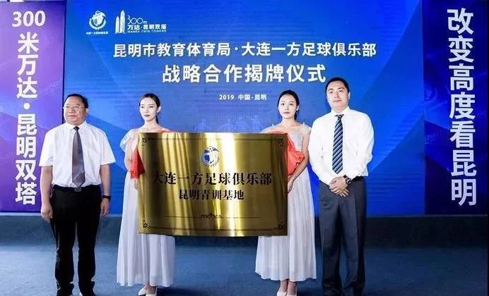 6月13日,昆明教育体育局与万达旗下的大连一方足球俱乐部战略签约仪式、大连一方足球俱乐部(昆明)青训基地挂牌仪式在万达昆明双塔举行。这意味着云南优秀的足球苗子将获得进入大连一方足球俱乐部的直通渠道。