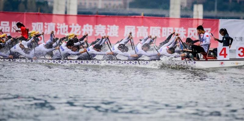 11月2日,2019昆明滇池国际龙舟争霸赛在海埂大坝草海水域拉开帷幕。赛事以“观滇池龙舟竞渡 展高原明珠风采”为主题,来自国内外的50支代表队上演高水平的龙舟竞渡,红嘴鸥和龙舟“竞逐”的画面成为春城的一道风景线,吸引了众多市民现场观赛。