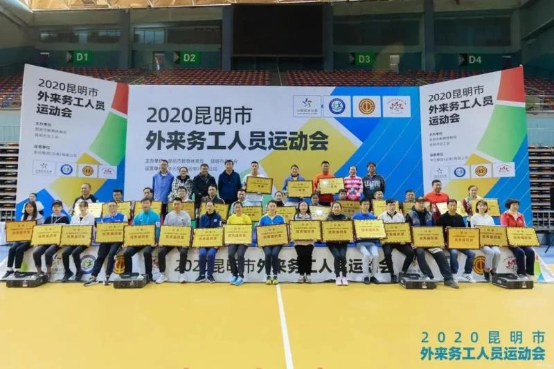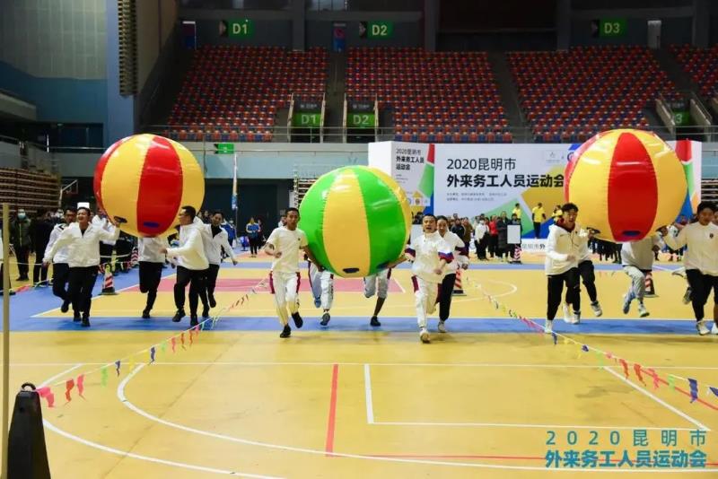 12月12日,由昆明市教育体育局、昆明市总工会共同主办的2020年昆明市外来务工人员运动会在新亚洲体育城(星耀体育馆)举行。这是昆明市举办的第十届外来务工人员运动会,参赛队伍和人数同往年相比都有所增加,来自全市各县(市)区的33队伍,424位选手参赛。今年的比赛还在掌上春城与昆明日报等媒体平台开通了报名通道,让更多公司企业及社会人群可以参与到这项赛事中来。云南白药集团股份有限公司、云南嘉华食品有限公司、昆明雪兰牛奶有限责任公司,昆明市轧钢厂等本土知名企业报名参与本次运动会。