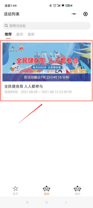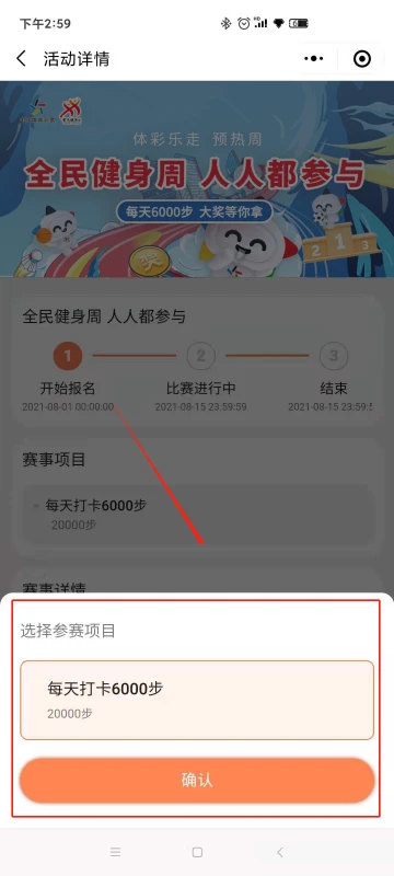 在小程序首页,会看到主题活动弹窗,点击「查看奖品」按钮,或点击底部「活动」查看活动列表,进入活动详情页面,查看活动详情,点击报名按钮,选择参赛项目。