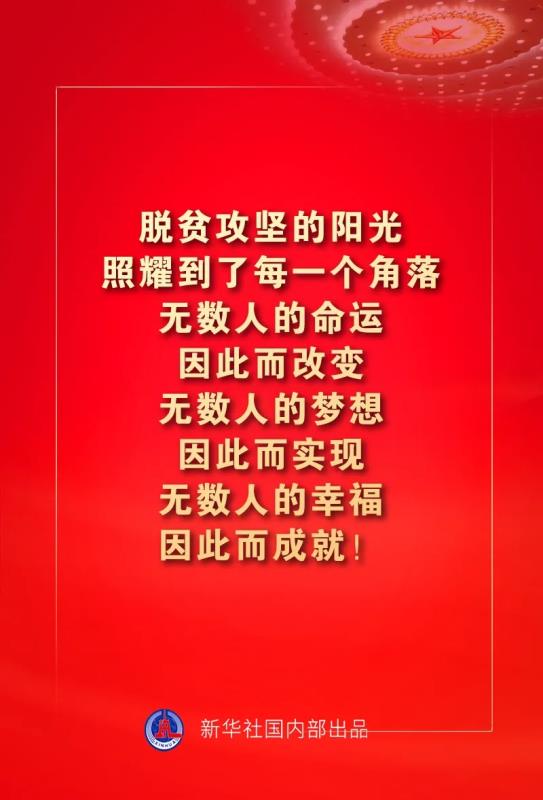 习近平在全国脱贫攻坚总结表彰大会上发表重要讲话,庄严宣告,经过全党全国各族人民共同努力,在迎来中国共产党成立一百周年的重要时刻,我国脱贫攻坚战取得了全面胜利,现行标准下9899万农村贫困人口全部脱贫,832个贫困县全部摘帽,12.8万个贫困村全部出列,区域性整体贫困得到解决,完成了消除绝对贫困的艰巨任务,创造了又一个彪炳史册的人间奇迹!这是中国人民的伟大光荣,是中国共产党的伟大光荣,是中华民族的伟大光荣!