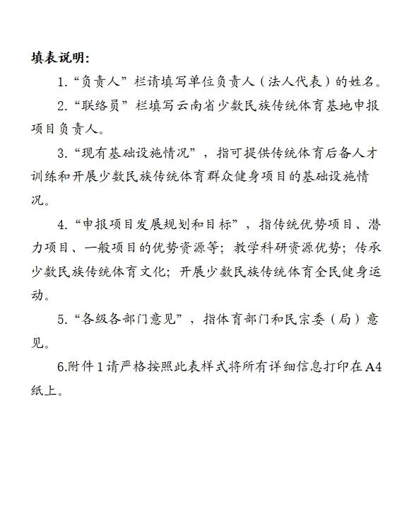 (一)县级申报:县(市、区)教育体育局、民族宗教委(局)对辖区内各申报单位的基本条件和申报项目进行筛选,报送州(市)教育体育局、州(市)民族宗教委初审同意;具体申报流程由各地体育主管部门具体负责;