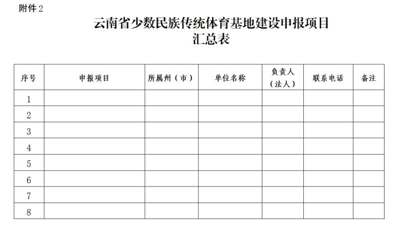 2.云南省少数民族传统体育基地建设申报项目汇总表