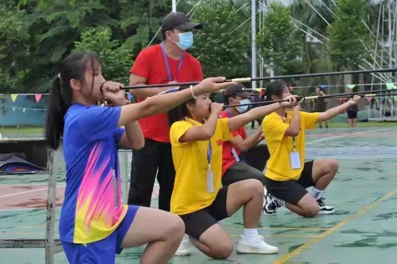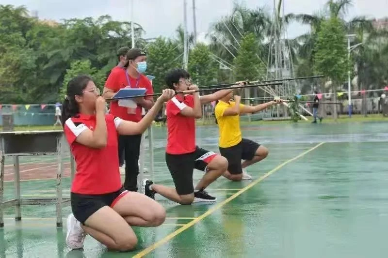 射弩运动员箭搭弦、弓满月,屏息瞄靶,聚力而发