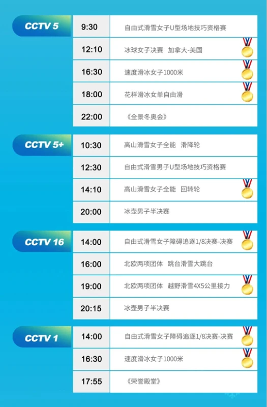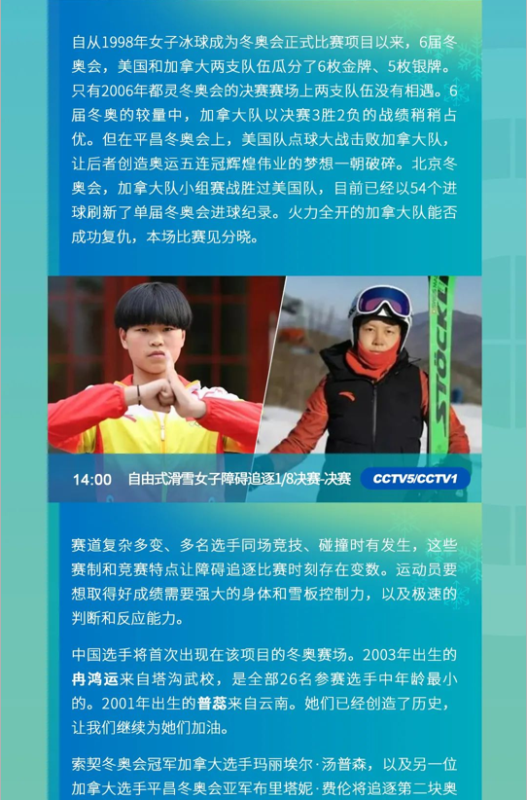 17日北京冬奥会赛程日历↓