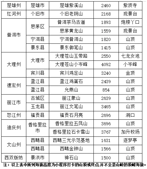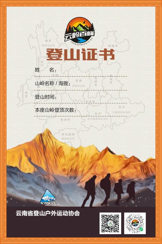 全省选择:将在2023年系统推出全省上百座山岭,促进云南人游云南,纵情优山美地,推进体育+旅游的全域体育旅游发展。每登上一座即可获得一份电子证书并有相关记录数据,增加大众登山健身的荣誉感。