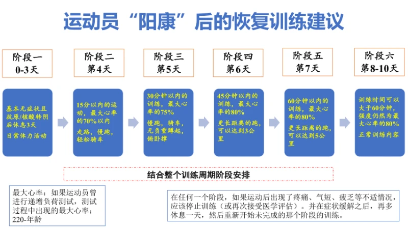 随后省体科所以《运动员感染新冠病毒后的恢复训练建议》为题,对感染新冠病毒后症状、对机体的危害(如对有氧能力的降低、肌肉含量的下降、脂肪的增多等)、国外对运动员“阳康”后恢复训练的研究建议、“阳康”后的膳食营养建议等内容进行阐述和讲解,给出了符合我省项目特点的运动员感染新冠病毒后的恢复训练建议。