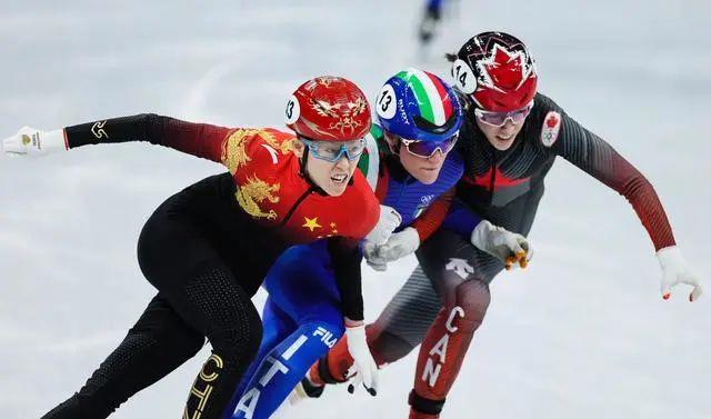 2月5日,短道速滑中国队选手范可新(左)在决赛中。新华社记者兰红光摄