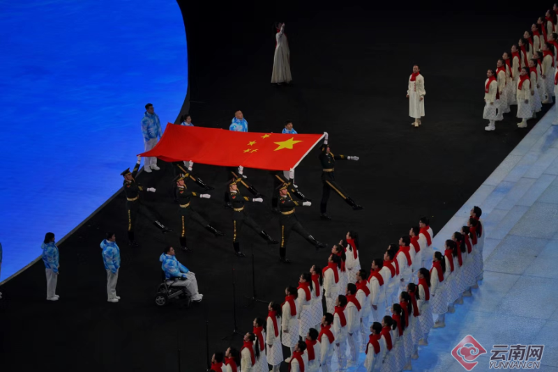 开幕式上,伴随着冬残奥会会旗冉冉升起,国际残奥委会会歌庄严磅礴的旋律回荡在体育场上空,向世界展示了中国残疾人昂扬奋进的精神风貌,传递了自强不息的中国力量。值得一提的是,此次演奏国际残奥委会会歌的乐手是47名来自重庆市特殊教育中心扬帆管乐团的盲人孩子。
