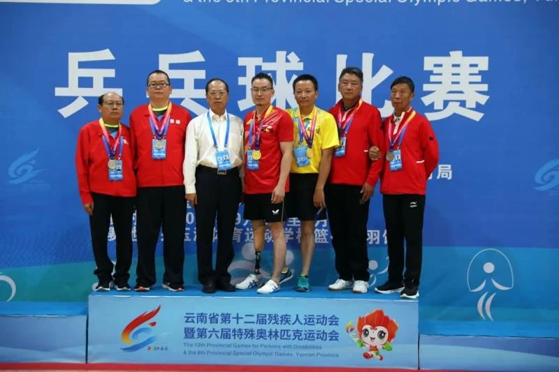 经过4天的紧张比赛,9月8日,云南省第十二届残疾人运动会暨第六届特殊奥林匹克运动会乒乓球项目收官,共决出9枚金牌。德宏代表队包揽TT10级别男子单打、女子双打冠军;楚雄代表队包揽TT9级别女子单打、TT10级别混合双打冠军;昭通代表队包揽TT9级别和特奥组男子单打冠军,以及TT10级别男子双打冠军;TT10级别女子单打冠军被西双版纳代表队夺得;TT8级别男子单打冠军被怒江代表队夺得。
