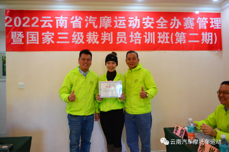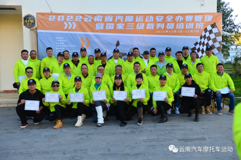 近日,2022年云南省汽摩运动安全办赛管理暨国家三级裁判员第一批培训班经过三天的理论、实操综合学习,在寻甸县圆满结束。来自全省各地的50余名学员,经过考核和综合评审后,按照裁判员管理办法申报国家裁判员资格注册,由云南省体育局颁发汽摩项目国家三级裁判员技术等级证书。