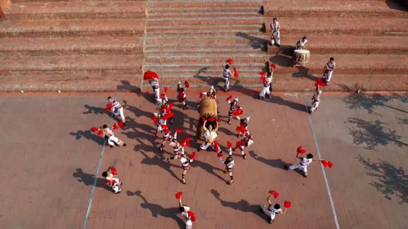 同时,云南少数民族众多,各民族形成了丰富多彩的文化与风俗。以基诺族为例,流传于西双版纳基诺族村寨间的基诺大鼓舞独具特色,每到基诺族的节日,各村寨都要跳起基诺族大鼓舞,祈求来年风调雨顺。直播现场,主持人在表演者的指导下,体验了基诺大鼓。