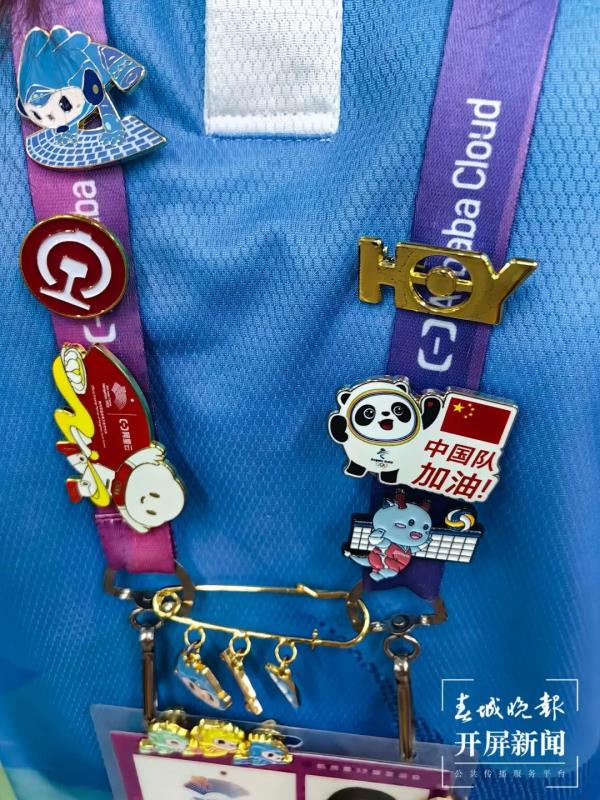 “这应该是我大学生涯里最特别的一段经历,除了能积累到很多实践经验外,还认识了很多朋友。”工作中,小美时刻保持着甜美的微笑,耐心服务。她的志愿者证的织带上挂着很多特别的徽章,这些徽章是在工作中结缘的运动员、媒体记者赠与或者交换给小美的。这一枚是一位记者交换给我的,这一枚北京冬奥会的徽章是从一个运动员哥哥那里交换来的。”她开心地说。