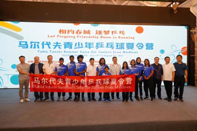 7月19日,马尔代夫青少年乒乓球夏令营在云南昆明开营。此次夏令营由云南省人民政府外事办公室、云南省体育局和马尔代夫乒乓球协会共同主办,是云南省与南亚国家合办的首个体育夏令营活动,得到中国驻马尔代夫大使馆的大力支持。主办方代表及来自云南省乒乓球队和马尔代夫乒乓球协会的40余名乒乓球教练和运动员欢聚一堂,共同见证夏令营开营。