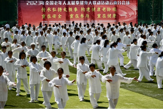 近日,云南省举办了2023年老年人太极拳健身大联动活动,共设101个分会场,15500余名老年人参与。