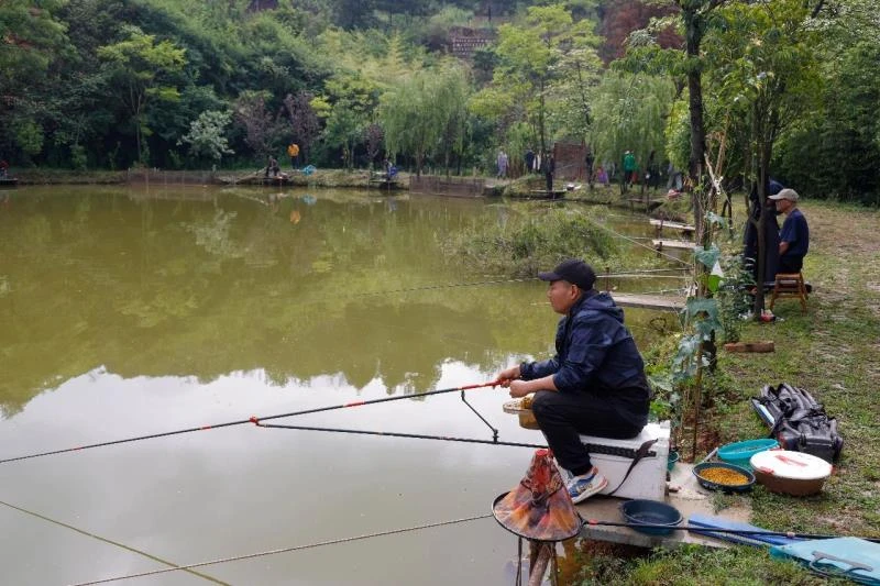 比赛当天,鱼塘四周青山如黛,天空中薄云密布,阵阵凉风袭人,适宜的天气让参赛者非常惬意,大家站在自选的钓位上快乐挥竿山水间。
