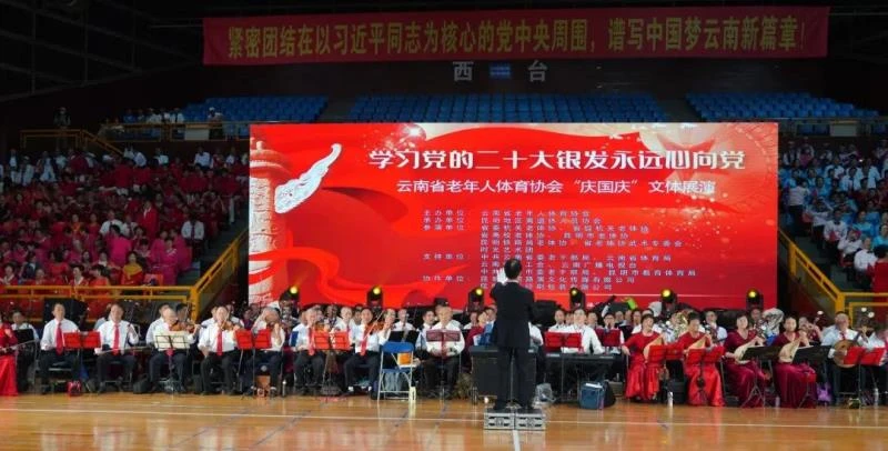 活动以“学习党的二十大·银发永远心向党”为主题,共组织全省约3000名离退休老干部职工共同参与。此次活动由云南省老年人体育协会主办,昆明地区离退休人员协会承办,邀请了省委机关老体协、省级机关老体协、省高校老体协、昆明市老体协、昆明铁路局老体协、省老体协武术专委会时光艺术团等参演。