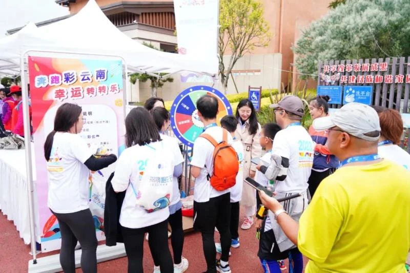值得一提的是,为了让广大跑友有更好的参赛体验感,本次活动特别新增了“奔跑彩云南 幸运转转乐”环节,跑友们完赛后拍摄在彩云南奔跑的视频上传至抖音,并带上话题#一起奔跑彩云南,就可以现场参与转转乐活动,赢取更多惊喜。56岁的费晓玲今年是第二次参加奔跑彩云南九大高原湖泊领跑赛,她说:“抚仙湖站的跑道和环境都特别舒服,工作人员的服务态度也很好,越跑越想跑,而且新增的转转乐活动非常有趣,我转到了三等奖,拿到了我最喜欢的奖品,下次比赛我还要继续参加。”