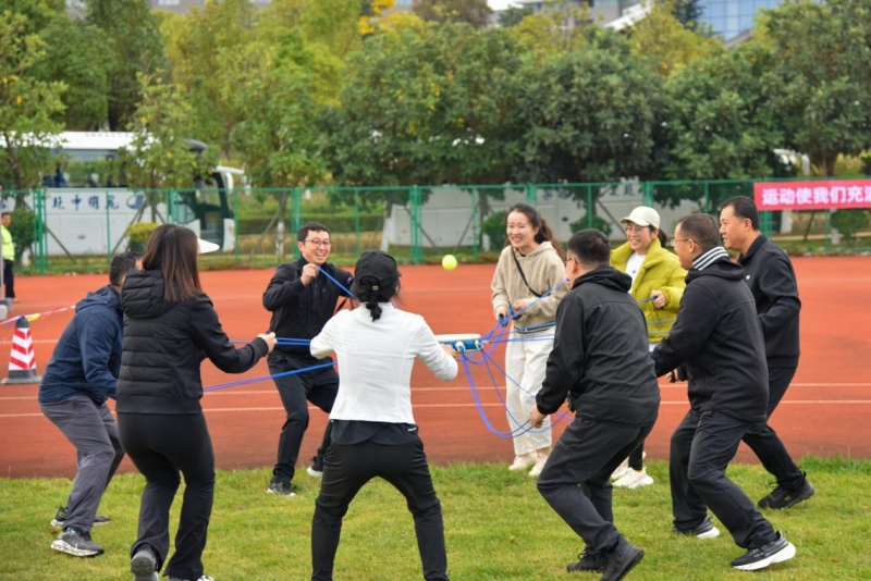 比赛既有力量的角逐,也有战术的较量;既是趣味与激情的碰撞,又是团队协作能力的检验。击鼓颠球、毛毛虫、勇攀高峰、团结一心、风火轮、拔河等形式丰富的团体项目释放了团队力量,提高了各运动队的协作能力。