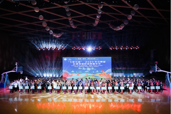 澜湄一家亲,携手向未来。11月3日下午,“七彩云篮”—2023年云南省边境幸福村体育嘉年华在云南省红河哈尼族彝族自治州河口县河口口岸体育中心落幕,来自越南、老挝、缅甸、泰国、柬埔寨5国代表队以及中国云南省16个州(市)的三人篮球代表队进行了三人篮球赛角逐,相关文化交流活动也同步举行,展现了体育对外交往的活力。