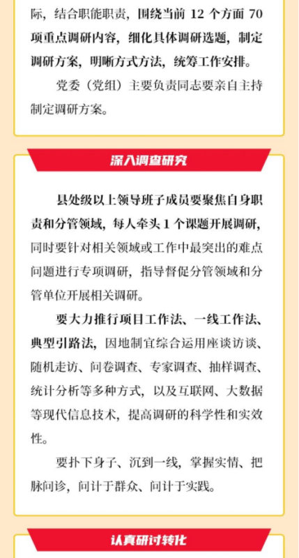 为贯彻落实《中共中央办公厅印发〈关于在全党大兴调查研究的工作方案〉的通知》精神,深入学习贯彻习近平新时代中国特色社会主义思想,全面贯彻落实党的二十大精神,省委办公厅印发《关于在全省大兴调查研究的实施方案》,决定在全省大兴调查研究,作为深入开展学习贯彻习近平新时代中国特色社会主义思想主题教育的重要内容,推动中国式现代化云南实践开好局起好步。