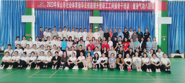 近日,保山市举行了“2023保山市社会体育指导员技能提升暨职工工间操骨干培训(健身气功·八段锦)”,来自保山各机关、企事业单位、中央及省属驻保单位和五县(市、区)社会体育指导员、工间操骨干参加培训。
