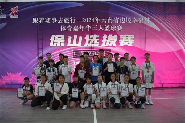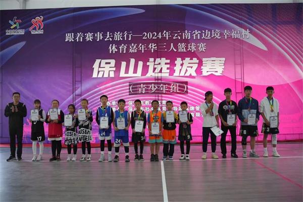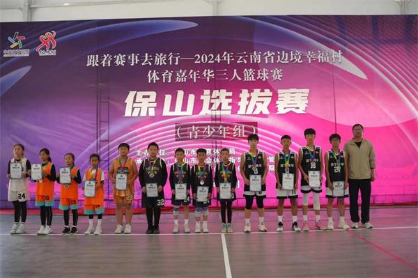 5月3日,跟着赛事去旅行—2024年云南省边境幸福村体育嘉年华三人篮球赛青少年组比赛在保山沃森青华馆落下帷幕,比赛设男、女子甲组(15-16岁组别)、(13-14岁组别)、男、女子乙组(12岁以下),共100余人参加比赛。