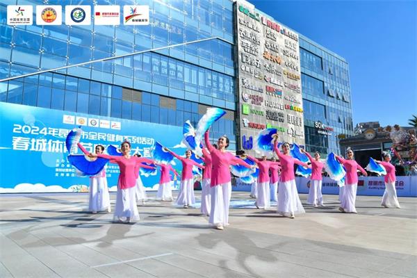 1月6日,2024年昆明市全民健身系列活动“春城体育节”广场舞大赛在昆明星耀广场举行,比赛吸引了来自全省共计63支队伍“舞林争霸”。