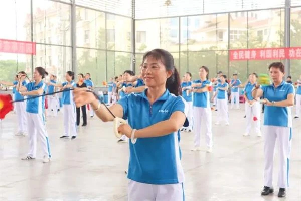 健身球操是一项深受广大中老年人喜爱的体育运动,其集健身、体操、舞蹈为一体,通过拍打全身穴位以及配合音乐舒展全身,把科学健身与观赏性、娱乐性完美地结合在一起。