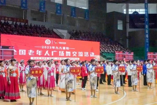 10月23日,2023年“九九重阳”全国老年人广场舞交流活动开幕式在丽江市体育发展中心举行