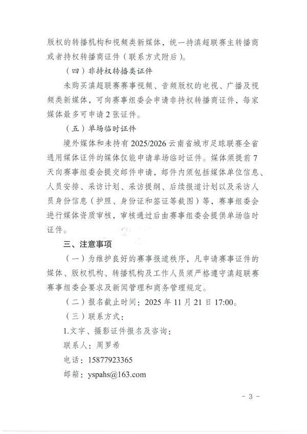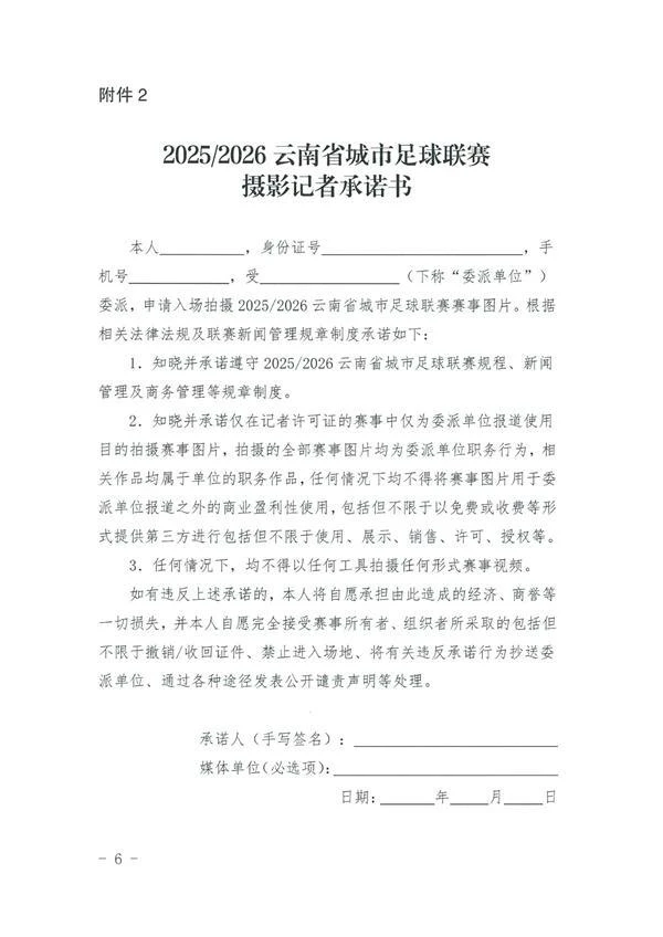 《关于2025/2026云南省城市足球联赛媒体证件注册、制证办法的通知》