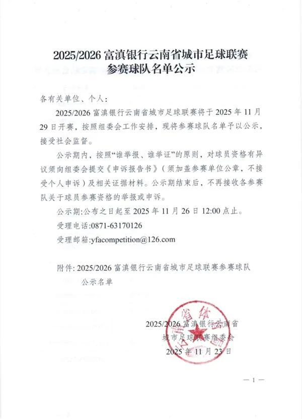 附件:2025/2026云南省城市足球联赛参赛球队公示名单.pdf