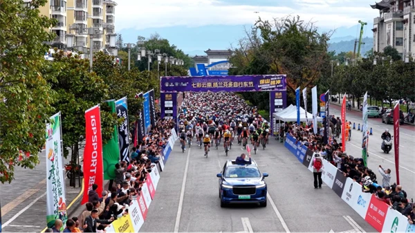 据统计,本次保山腾冲站共吸引来自20多个国家和地区的1983名骑行爱好者报名,其中长距离选手1693人、短距离选手290人。上午8时30分,芒市站勇夺长距离男女子组冠军、获得黄色领骑衫的王进和李思引领着长距离组选手率先从文治光昌广场出发,踏上征途。