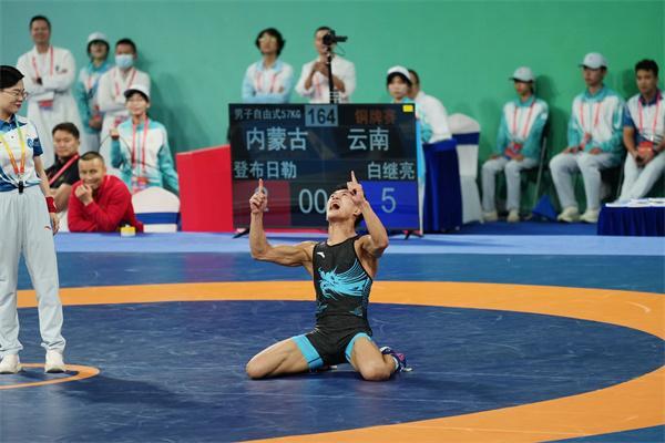 十五运会男子自由式57公斤级 云南选手白继亮夺下铜牌