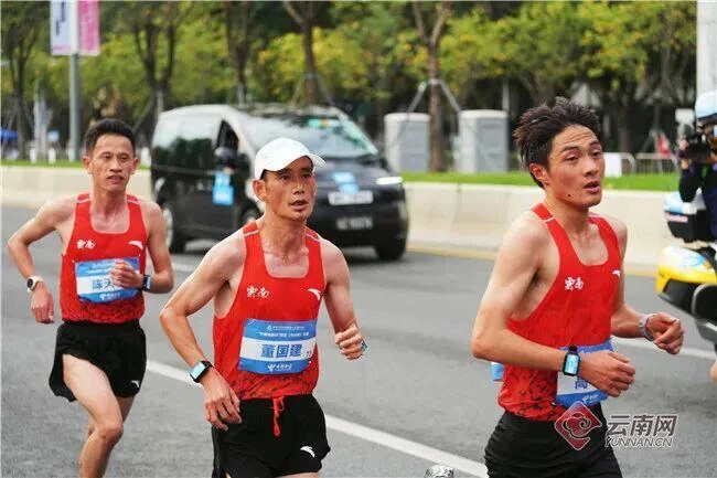 男子马拉松比赛中,高鹏一直在领先集团中表现亮眼,跟随冠军何杰,何杰在36公里处提速,高鹏跟随领先集团,顺利完赛,最终收获了一枚银牌。云南共有高鹏、董国建、杨绍辉、陈天宇4名选手参赛,高鹏在比赛中始终保持着较好的配速,将自己的位置稳定在争冠集团中。