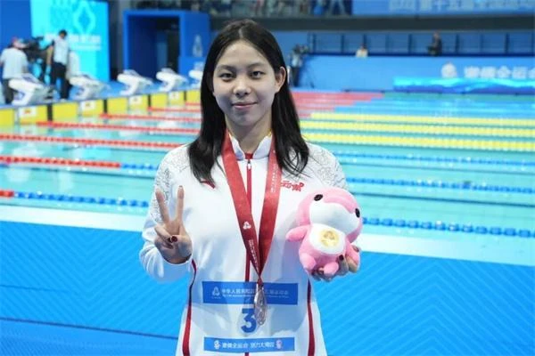 11月15日晚,第十五届全国运动会游泳项目女子200米蛙泳迎来决赛较量,云南“00后”游泳小将朱蕾桔以2分25秒03的成绩摘得铜牌。江苏选手吕沁遥斩获该项目冠军,上海选手唐钱婷获得银牌。