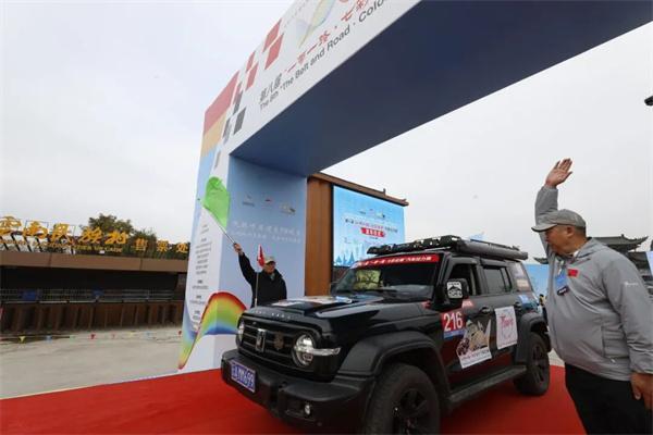 发车仪式在云南民族村高原艺术团的激情歌舞中拉开序幕。为纪念赛事创办十周年,组委会特别制定十周年庆奖杯,现场嘉宾共同为奖杯揭幕。车手代表发言结束后,举行了庄重的授旗仪式。随后,发车令下,引擎轰鸣,车队正式踏上为期19天、总行程约5000公里的跨国征程。