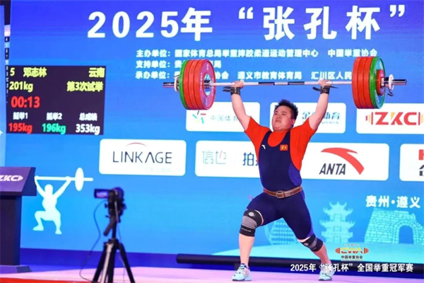 在男子102公斤级比赛中,云南选手邓志林展现了良好的竞技状态。抓举环节他稳扎稳打,最终锁定157公斤,获得单项第五名。转入挺举比赛,凭借在该项目的优势,邓志林以201公斤获得挺举第一名的成绩。最终,他以358公斤的总成绩夺得该级别冠军。