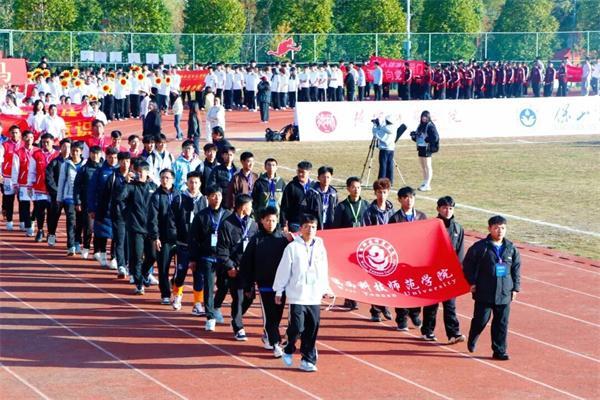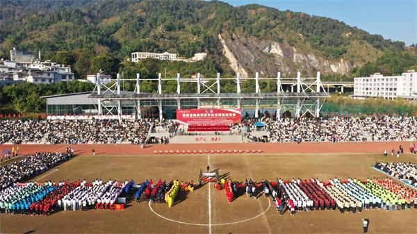 冬日的临沧,依然暖阳如织,绿意未减。开幕式上,各代表队精神抖擞、运动员朝气蓬勃。现场,进行升旗仪式和领导致辞后,滇西科技师范学院精心准备的《龙腾狮跃》《民族团结心连心》《体育为舟,强边有我》等精彩节目轮番上演,充分展现了临沧市丰富的民族文化底蕴和各族儿女团结奋进的精神风貌。最引人注目的是揭幕战开球仪式,一架无人机携带着联赛会旗、校旗和比赛用球,从云端缓缓降落至赛场中央,这一充满科技感的创新设计,展现了“以球会友、同心共融”的赛事宗旨,也象征着友谊与梦想的传递。
