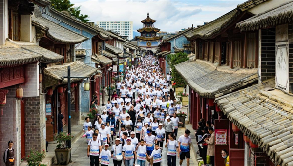 值得一提的是,祥云人民的热情好客为这场文化漫步增添了独特的温度。在清红路、龙翔路等关键点位,当地商家倾情助力,为参赛者提供了凉虾、城西黄粉、石膏豆腐等独具祥云风味的特色补给。这份源自市井街巷的诚挚款待,让每一位跑者在丈量历史的同时,更通过味蕾深入体验到“最早叫云南的地方”最真实、温暖的人间烟火。