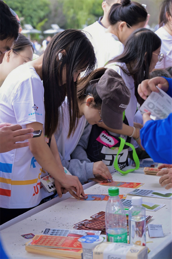 “体彩美好市集”作为活动的重要组成部分,巧妙融合了公益属性与地方特色。体彩公益专区通过即开型彩票销售和公益金用途讲解,生动展现了中国体育彩票“来之于民、用之于民”的发行宗旨;本地特色市集则汇聚了麦芽糖、红梨、蜂蜜等地方美食以及云南特色手工艺品,营造出独具特色的市井氛围,让参与者在运动之余感受最地道的云南生活。
