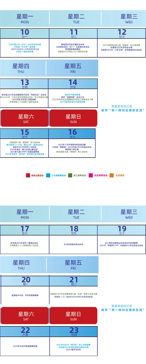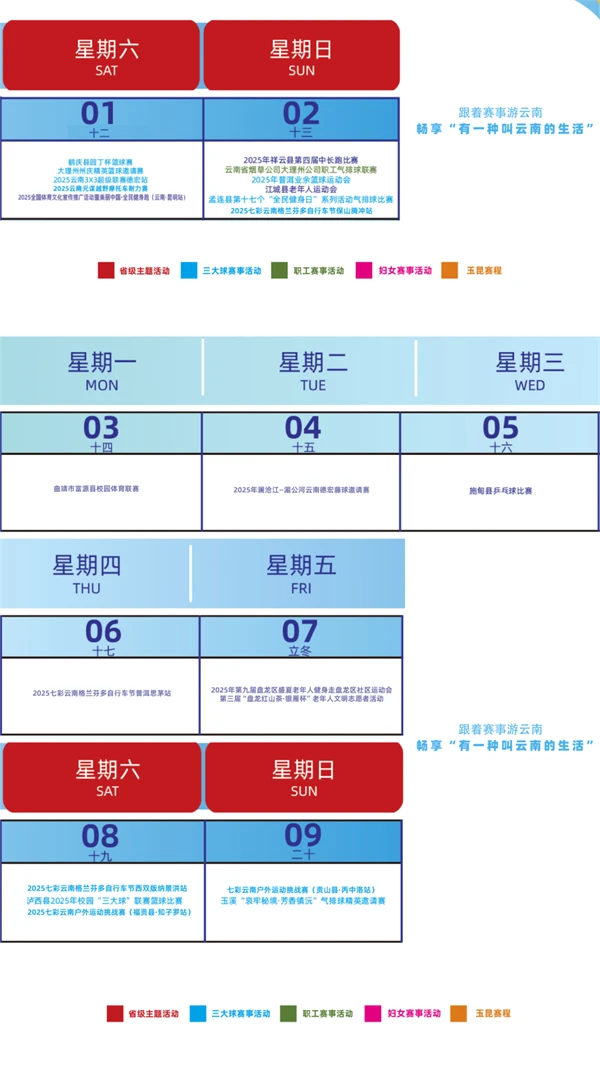 云南赛事月历丨94场赛事精彩来袭!11月全民健身赛事活动指南请收好
