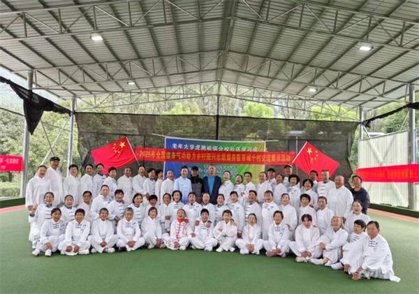 近日,2025年全国健身气功助力乡村振兴志愿服务暨百城千村交流展示活动——老年大学虎跳峡镇分校健身气功班在迪庆州产业园区门球场举行。虎跳峡镇、产业园区离退休人员和附近部分乡村老人共82人,全程接受为期10天的免费培训。
