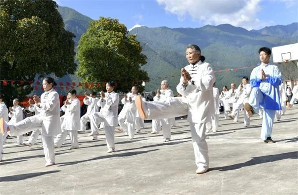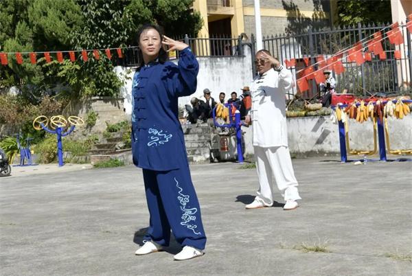 在培训期间,一场由香格里拉市金江镇兴隆村离退休党支部组织的八段锦、大舞、易筋经展演也同步进行,126名村民以柔美、舒展、规范的健身气功功法赢得现场阵阵掌声,村民们深刻感受到了全民健身成果走进“寻常百姓家”。
