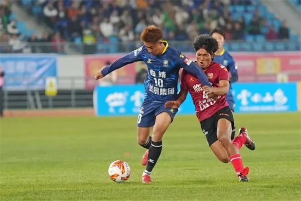 曲靖5-0临沧。此役,首轮远征迪庆的曲靖队回归主场曲靖市文化公园体育场,迎战来访的临沧队。上半场刚开场,曲靖队9号赵奕豪状态火热,短时间内连入两球,随后38号李科延续攻势取得进球,帮助球队早早确立领先优势。下半场,曲靖队延续高压态势,持续向临沧队防线施压,18号张晓波与41号余杰迪先后斩获进球,将比分优势进一步扩大。最终,曲靖队以5-0的悬殊比分主场大胜临沧队,全取3分。
