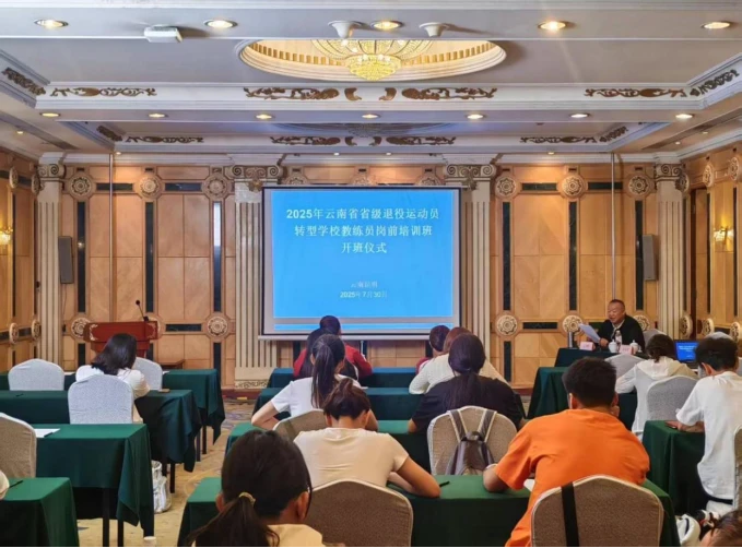 为加快体育人才资源向优质教育资源转化,推动我省退役运动员安置工作高质量发展,7月28日至8月3日,云南省体育专业人员服务中心在昆明饭店举办2025年省级退役运动员一级社会体育指导员培训班和转型学校教练员岗前培训班,共有来自5个省级训练单位的34名退役优秀运动员参加培训。