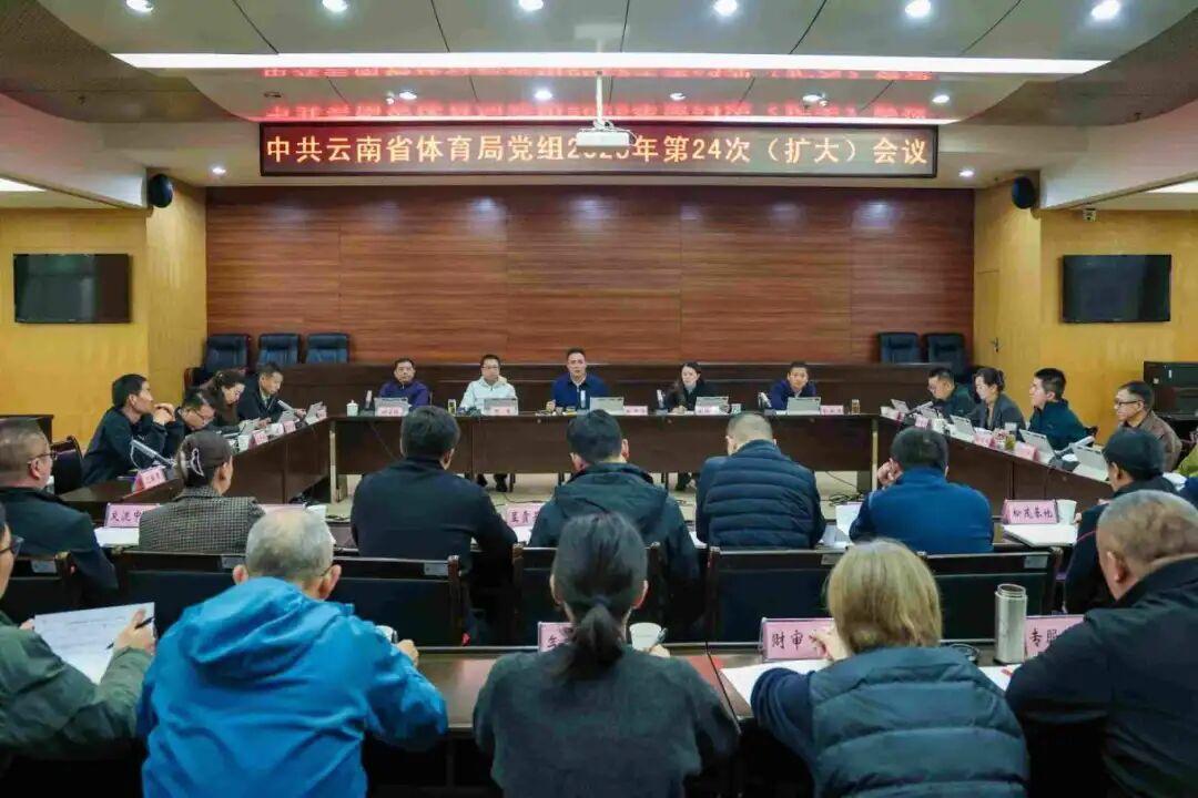 10月28日,云南省体育局召开2025年第24次党组(扩大)会议,传达学习党的二十届四中全会精神。局党组书记、局长杨中华主持会议,局党组成员、副局长余红颖、邢晋、张云龙出席。省纪委监委驻省文化和旅游厅纪检监察组副组长刘学科,省体育局机关各处室以及各直属单位主要负责人参加会议。