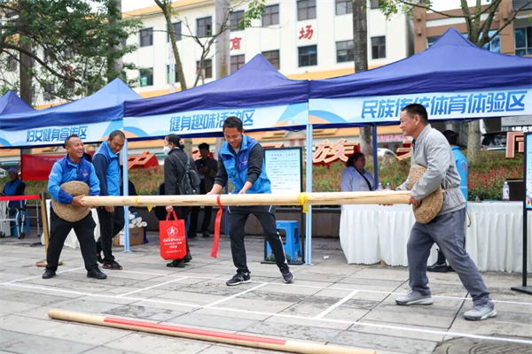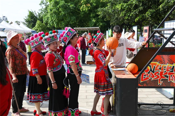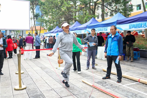 另一方面,活动实现了“民族体育”的创造性转化、创新性发展。云南体育运动职业技术学院体育舞蹈教学团队,创编教学了多套融合民族元素的健身操,在威信教学《苗族民族健身操》,在富宁教学《壮族民族健身操》,在玉溪教学《哈尼族民族健身操》,在宣威教学《回族民族健身操》,在保山教学《白族民族健身操》。这些操舞将民族舞蹈的典型韵律与健美操的科学规范相结合,降低了学习门槛,激发了群众的民族文化自豪感与参与热情。此外,投壶、打弹弓等一系列民族传统体育项目体验,也让市民在趣味中感受到体育文化的丰富多彩。这种“体育健身+民族文化”的模式,让健身活动升华为一种愉悦的文化体验,极大地增强了活动的吸引力和感染力。
