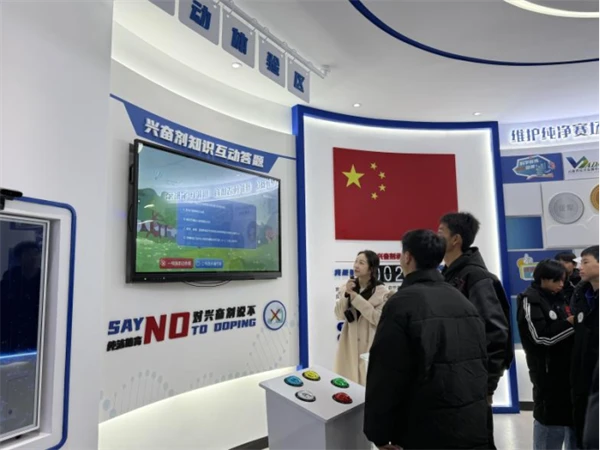 在教育基地内,运动员们在讲解员的引导下,依次参观了各主题展区。通过展板展示、实物陈列和互动设备体验,系统学习了反兴奋剂法律法规、政策要求、兴奋剂的分类与危害,以及“三品”(食品、药品、营养品)风险防控等重点内容。活动现场还播放了由云南省专业队优秀运动员代表录制的反兴奋剂知识小课堂视频,以榜样的力量,让青少年运动员深刻认识到兴奋剂对身心健康、体育公平和国家形象的严重危害,进一步筑牢“不敢用、不想用、不能用”的思想堤坝。