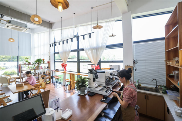 2025年8月27日在浙江省湖州市长兴县虹星桥镇宋高村稻香伴日营地内拍摄的咖啡屋。这是宋高村做优全域土地整治后的农文旅新尝试,集餐饮、旅游、农业和文化于一体。记者 徐昱 摄